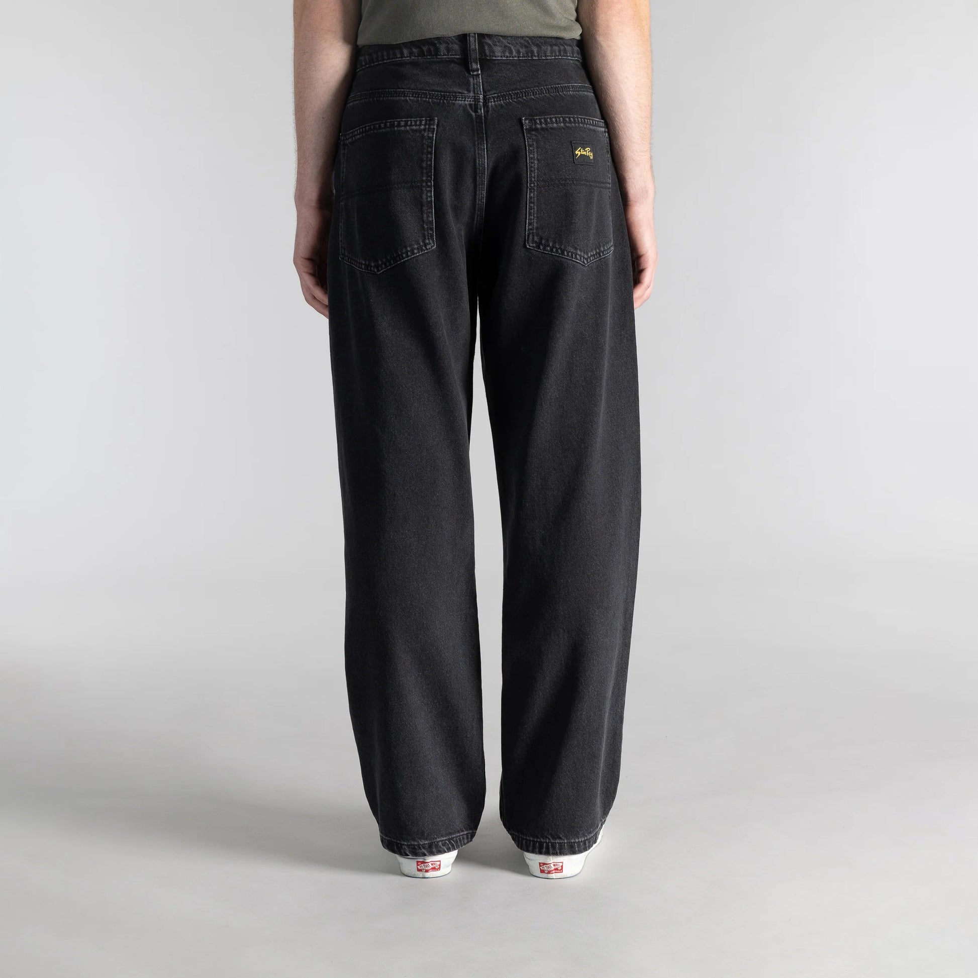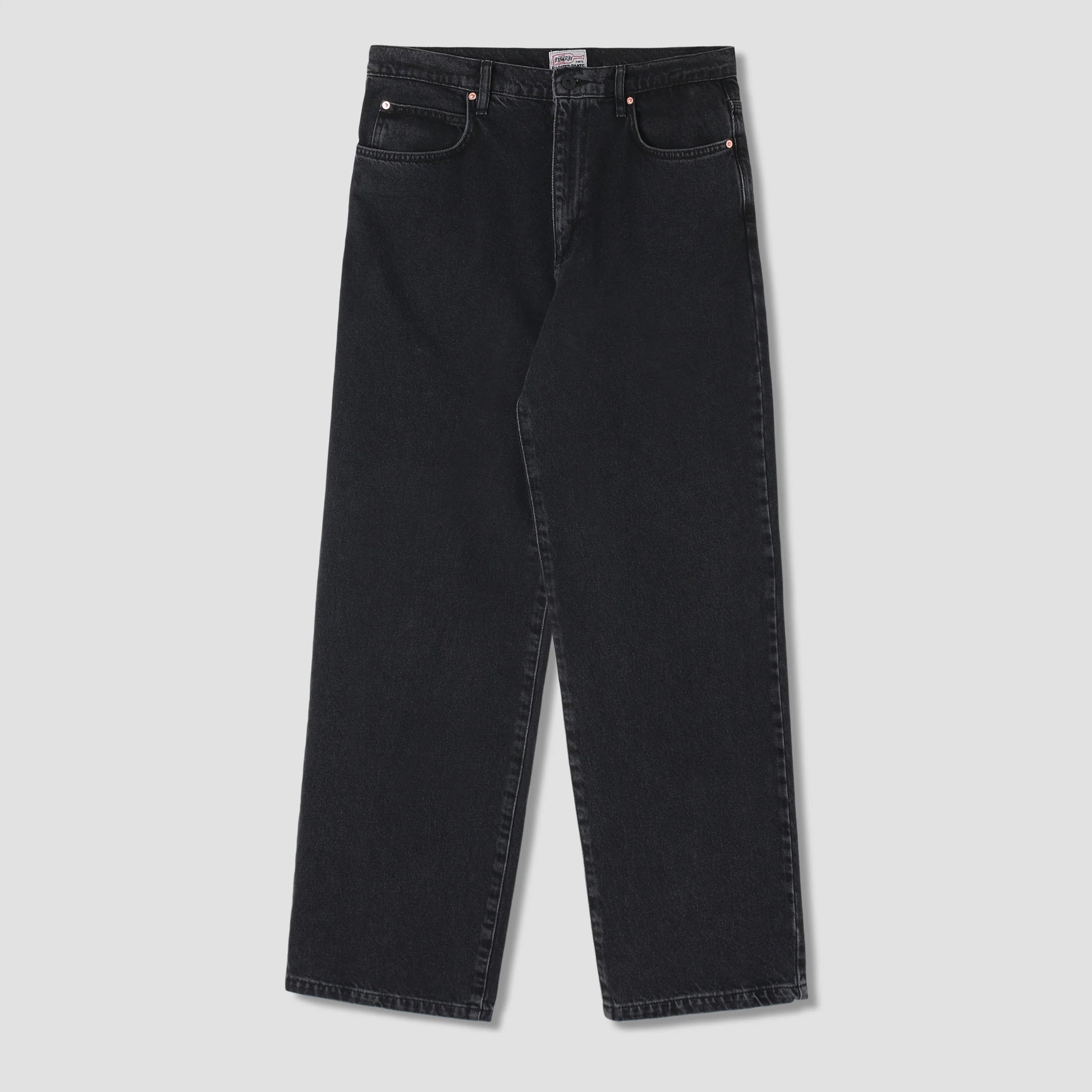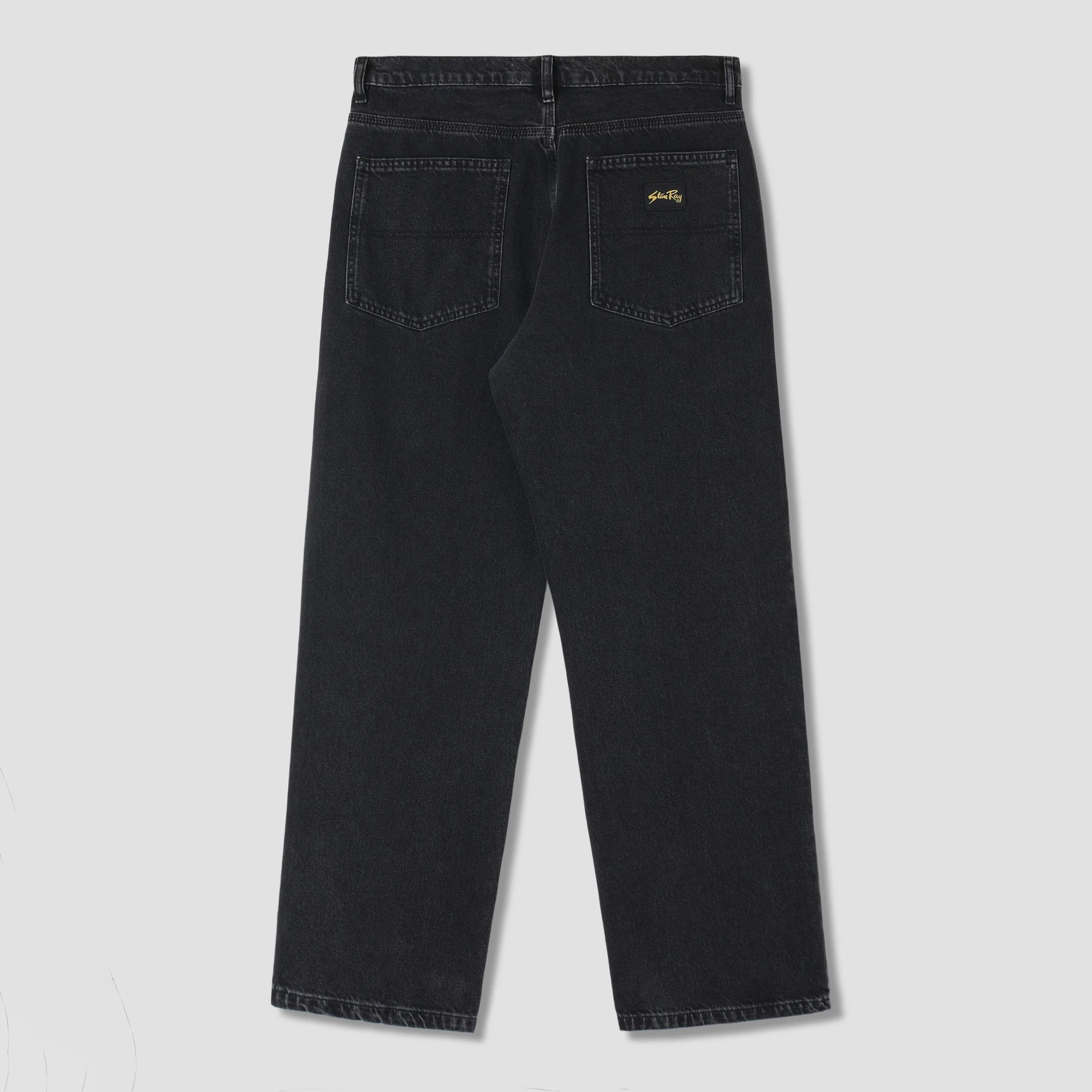 The Standard 5 in stonewashed black denim features a straight leg, mid-rise waist, and slight taper for a balanced fit. Made from 100% cotton, these jeans include durable details like chain-stitched seams, bar-tacked stress points, and triple-needle back yoke seams. With spade-style back pockets, riveted front pockets, busted side seams, and a zip fly, they offer classic style and long-lasting wear. The Stan Ray woven patch adds a finishing touch to the design.