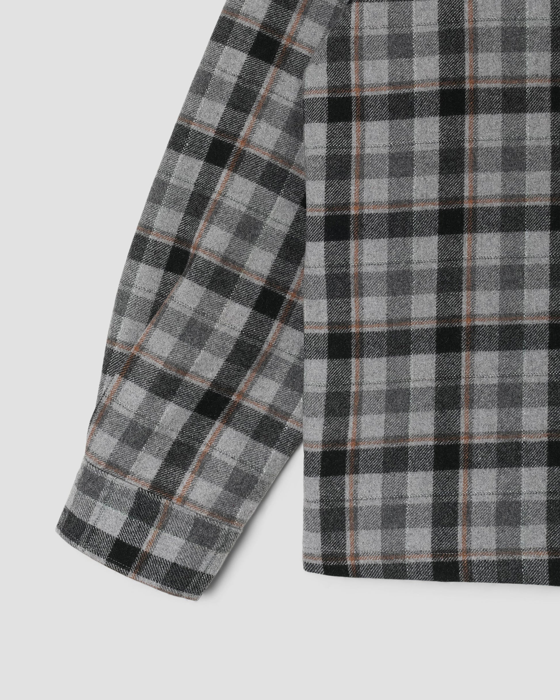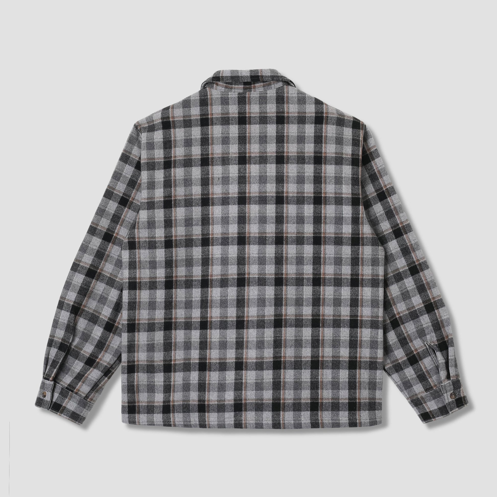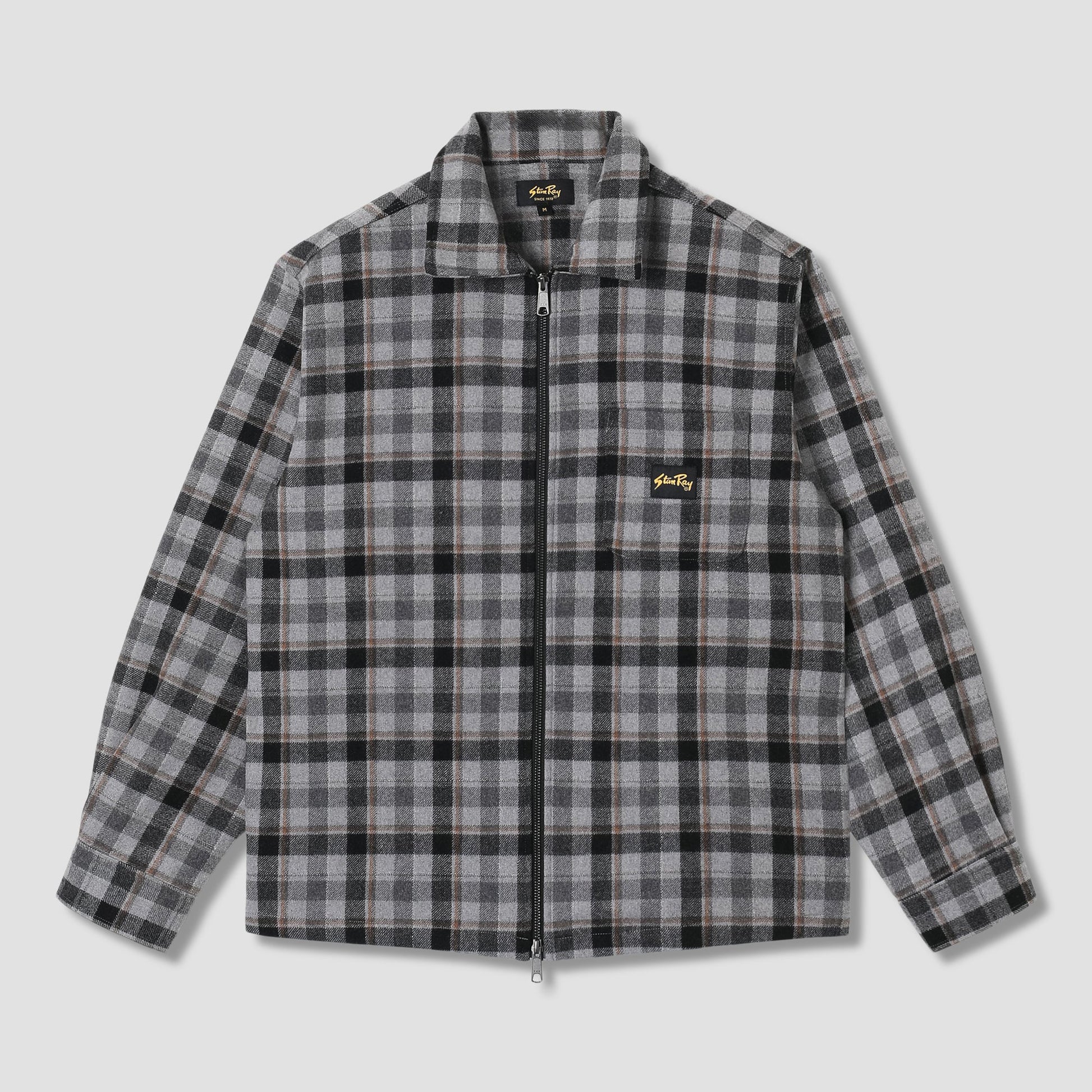 The Stan Ray Zip Shirt in Charcoal Plaid, a modern twist on classic workwear, blends a vintage mechanic’s jacket style with a modern overshirt. Made from 380gsm 100% brushed cotton flannel. The shirt features a YKK zip-front, an OG label patch pocket on the chest, in-set hand pockets, and hidden slash pockets at the side seam for convenient storage. This versatile piece offers comfort and practicality in one straightforward design.