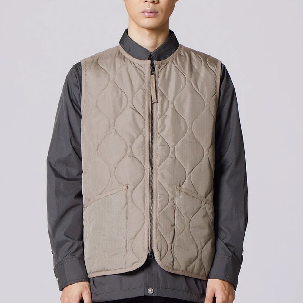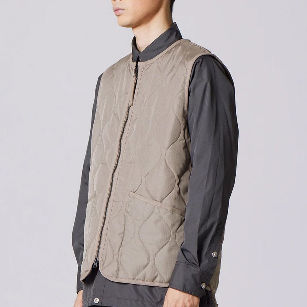 Taion's Military Line is a unisex range, complete with an array of functions enabling an increased range of movement, making each piece highly versatile. The Zip Vest is always one of our bestsellers, built from a rugged ripstop fabric and cut in a way to be extremely useful across seasons. Model is 180cm tall and wearing a size Large.