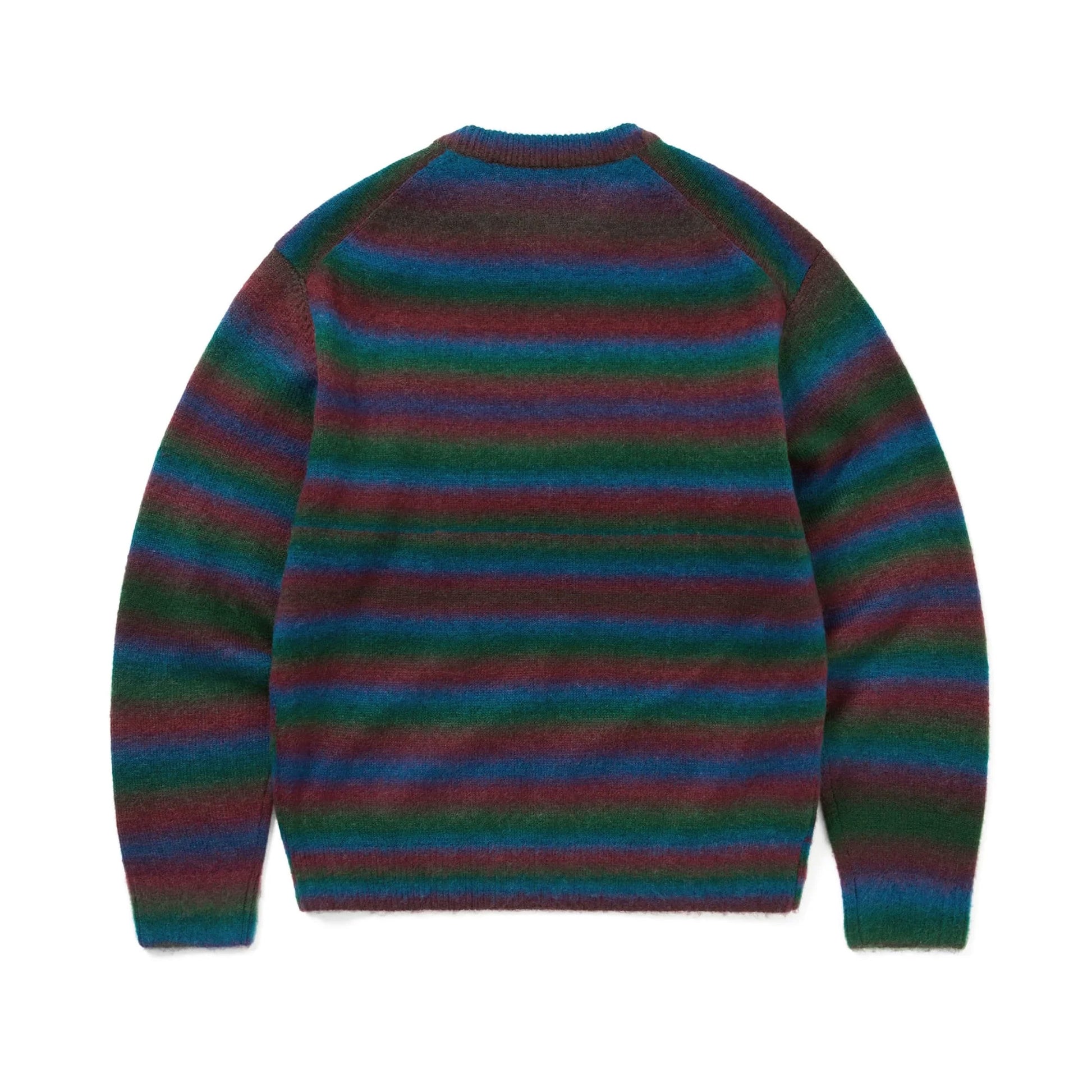 A standout knit made from a soft acrylic blend with subtle stretch. The garment-washed finish creates a relaxed soft feel, with ribbed detailing at the collar, cuffs, and hem. Jacquard artwork adorns the front. Regular fit suits most body types. Unisex style.