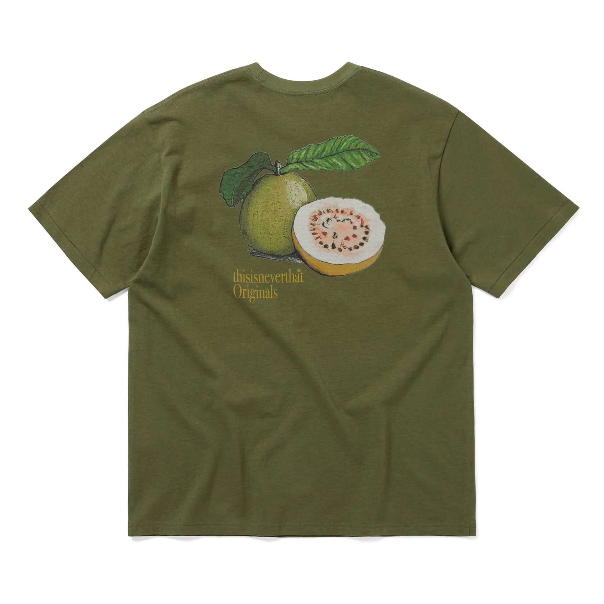 Thisisneverthat Guava Tee in Moss with a comfortable regular fit made from soft 100% cotton jersey weighing 210GSM. Garment-washed for a comfotable feel, it features printed artwork on both front and back with a durable ribbed collar.