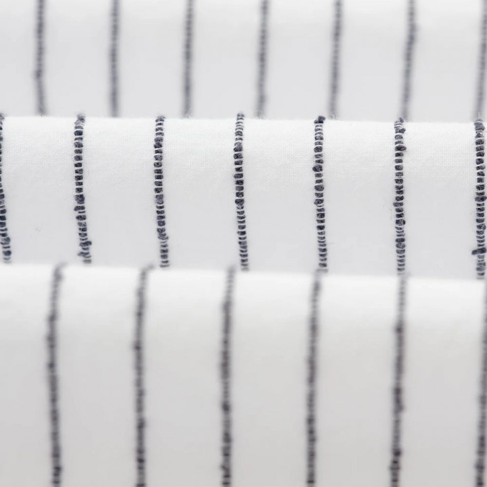 The minimalist Kew short-sleeve shirt returns for SS25. Designed for a relaxed, boxy fit, this edition is crafted from a cotton-poplin blend and features a textured navy stripe woven with bouclé yarn.