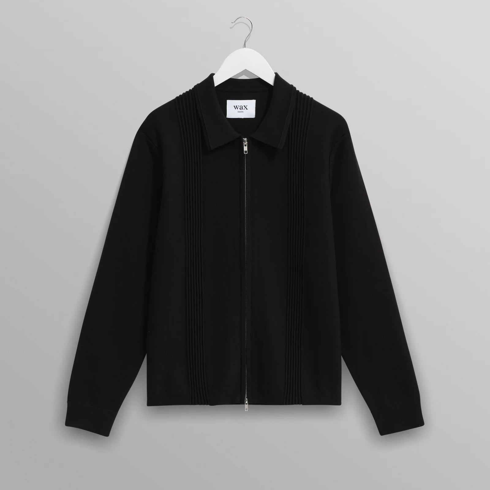 Wax London Lennox Zip Polo, Milano Ripple Stripe - Black