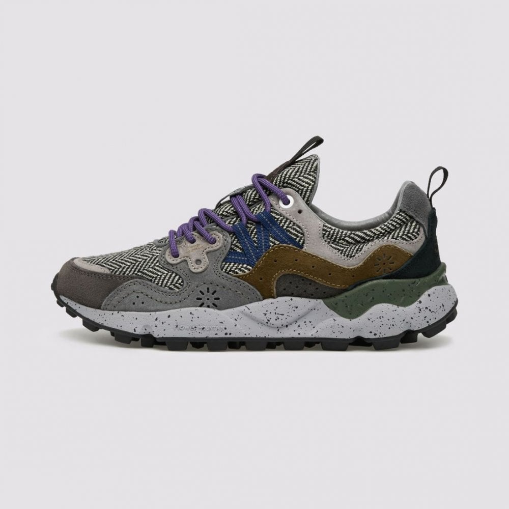 Sneakers with fabric upper with herringbone chevron design and overlapping inserts in on-tone suede. Closure with trekking laces and flower-shaped eyelets, an iconic element of the brand. Fabric and leather lining, with natural antibacterial cork insole. Ultra-light rubber sole with two-tone compound and toothed tread.